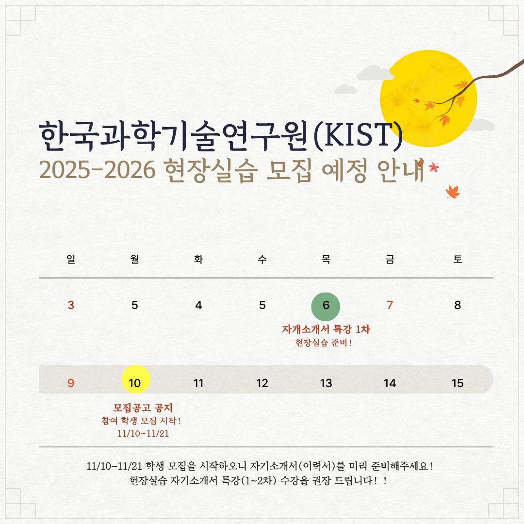 한국과학기술연구원(KIST) 현장실습 모집 예정 안내(2025-동계 계절학기)